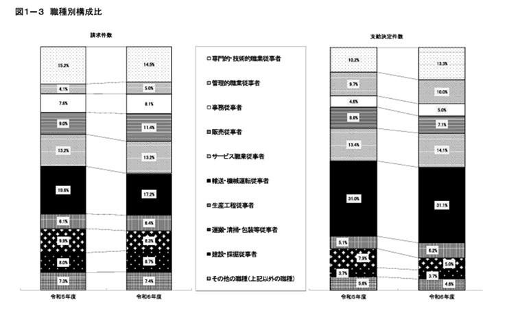 | 請求件数 | 輸送・機械運転従事者 | 専門的・ 技術的職業従事者 |