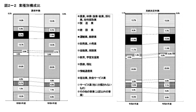 ⑵ 業種別の請求件数・支給決定件数
