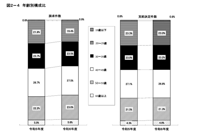 | 支給決定件数 | 40~49歳 | 30~39歳 | 20~29歳 |